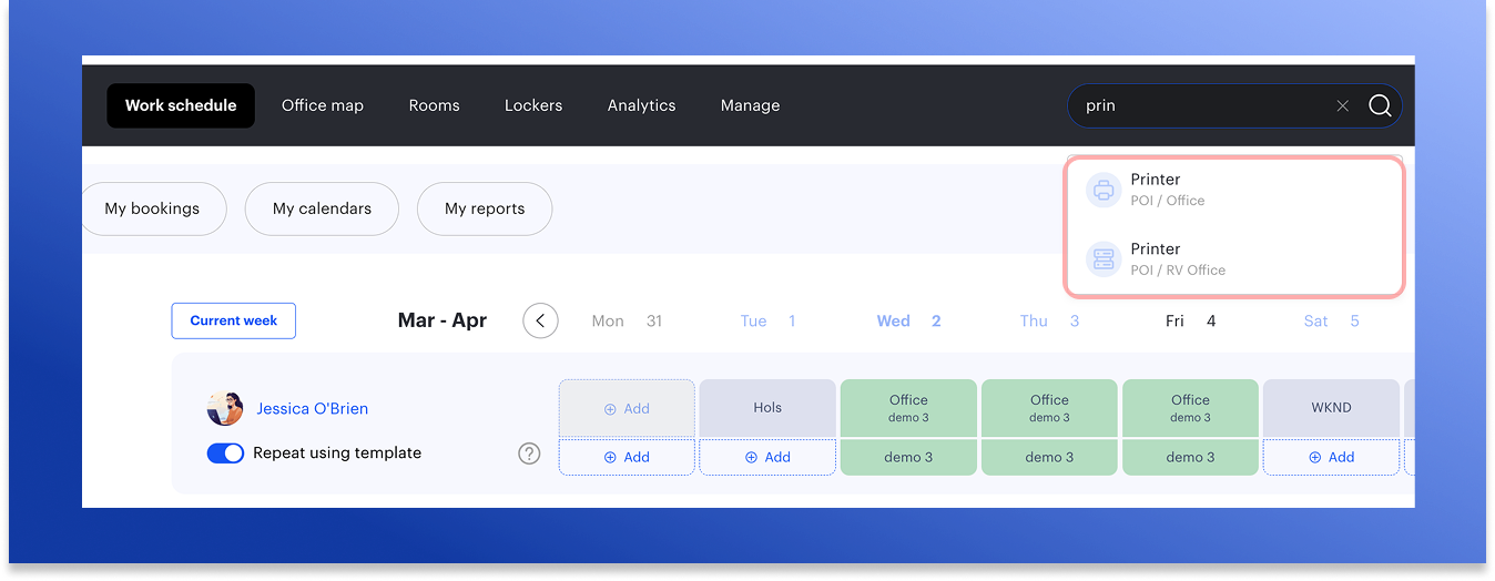 Previously, upcoming days appeared as empty in reports, even if an employee had an active schedule template or a reserved workspace. Now, the system automatically fills in this data, providing an accurate view of the work schedule for the coming month and beyond.