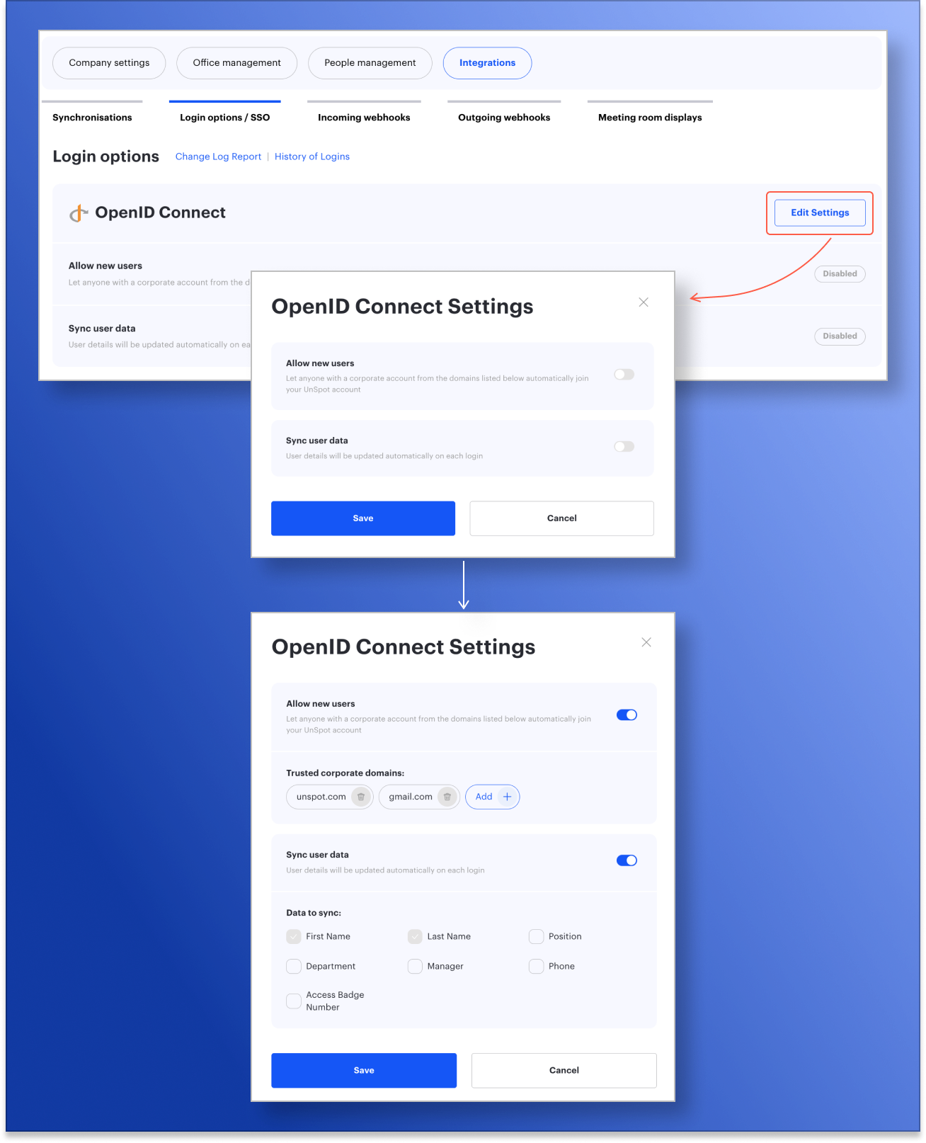 We’ve made configuring OpenID Connect even more convenient and intuitive. Administrators can now manage trusted domains and choose which user data will be synchronized via SSO.