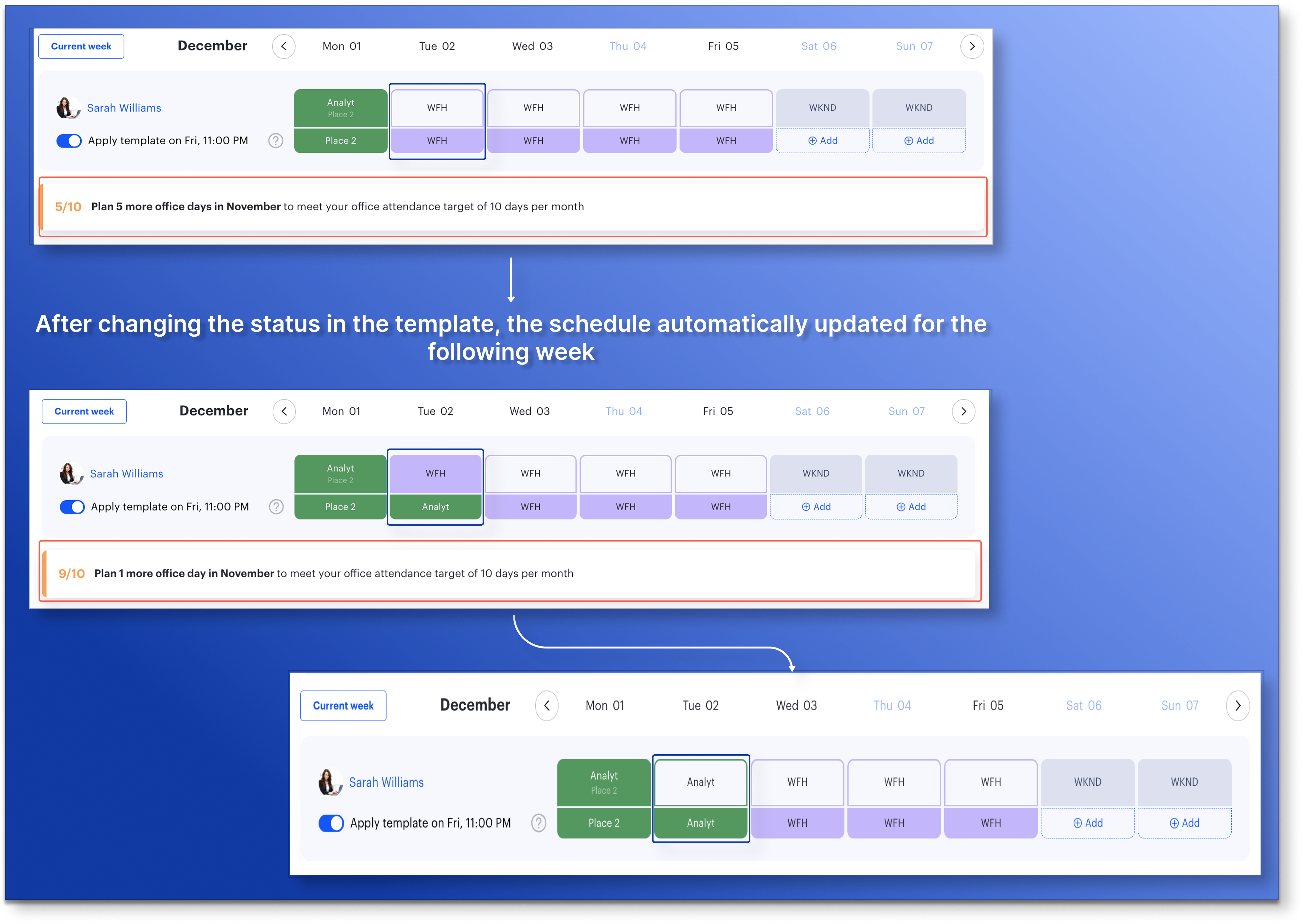 Reports now fully reflect real schedules, helping teams plan office attendance accurately and without errors.