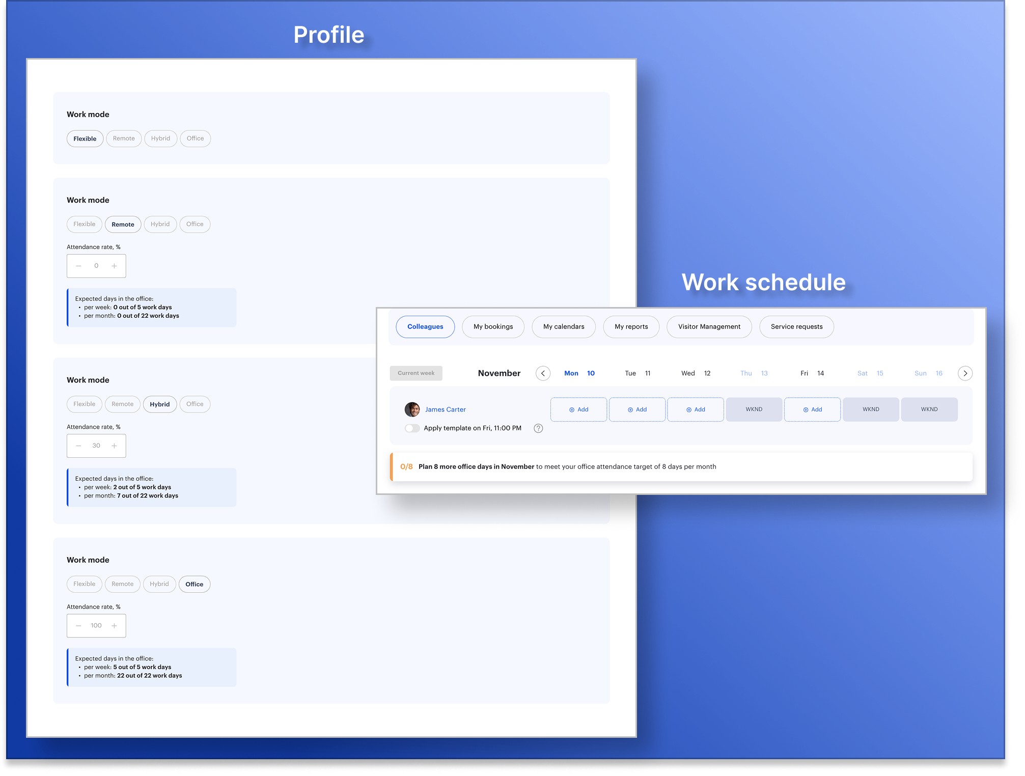 Managing work time is now simpler: schedules are transparent, attendance requirements are clear, and planning workdays is straightforward.